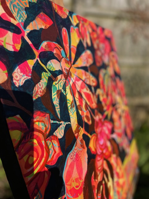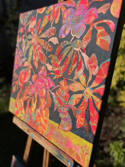 50 x 50 cm square deep set canvas, rich acrylic paint layering.